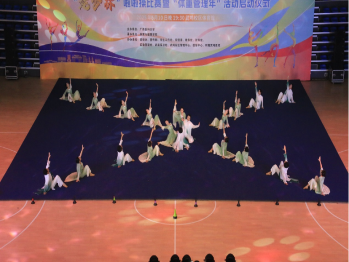 2025 年 5 月 10 日晚,广西医科大学第五届体育文化节 “逐梦杯” 啦啦操比赛暨 “体重管理年” 活动启动仪式在武鸣校区体育馆举行。信息与管理学院啦啦操队凭借卓越表现,从众多参赛队伍中脱颖而出,勇夺比赛第一名!