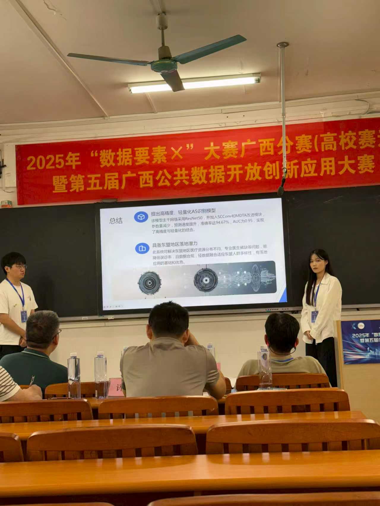 本次大赛以“释放数据要素价值,赋能数字广西建设”为主题,旨在激发高校创新活力,推动公共数据开放共享与应用,培养数字经济领域人才。我院信息系硕士生许建敏、陈浩、刘玉葱及一附院超声医学科硕士生梁贵姿组成团队,在信息系张茂胜教授和超声医学科邓燕主任的悉心指导下聚焦主动脉瓣狭窄识别的实际需求,创新性地运用深度学习算法打造了兼具创新性和应用性的参赛作品,赢得了评委的一致好评。